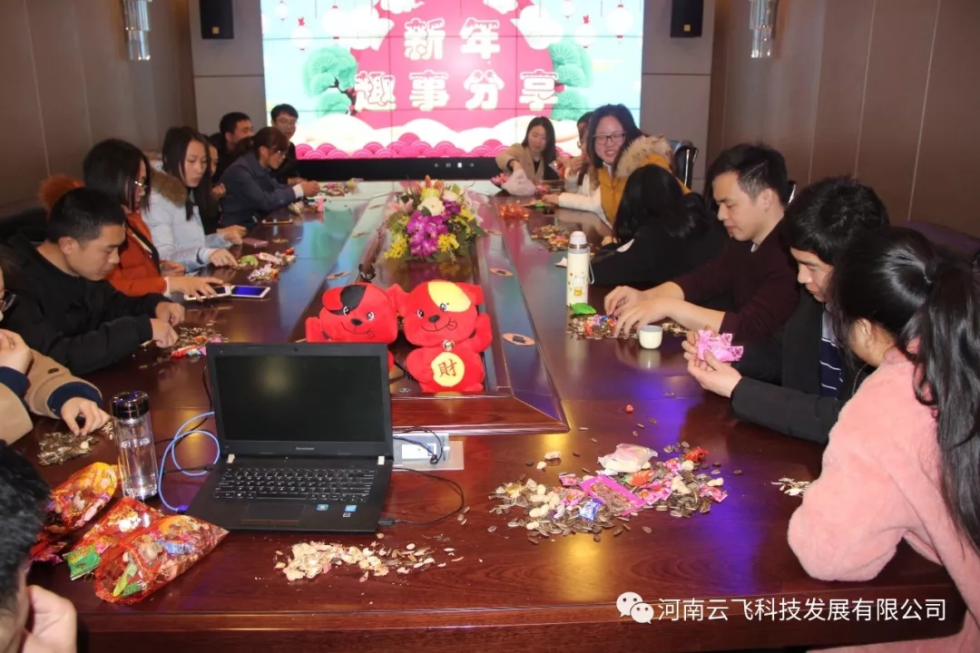 新年伊始,万象更新,云飞科技于2018.02.22(正月初七)正式上班。为活跃工作气氛,增进同事感情,特举行新年趣事分享会,各位同事在吃吃喝喝的氛围中,积极表述自己在春节期间遇到的各类奇葩有趣的事情。