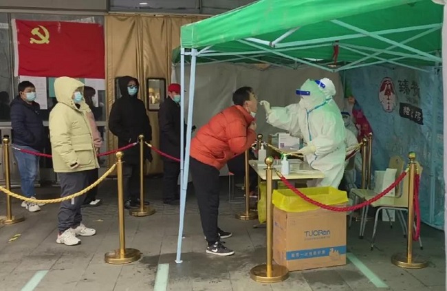 在凛冽的寒风中,一场与时间赛跑、与病毒赛跑的检测行动正有序地开展着。而随处可见的“大白”也全力以赴坚守在自己岗位中,对长龙进行着取拭子、采样、装进试管、手消毒这一系列娴熟且严谨的动作。