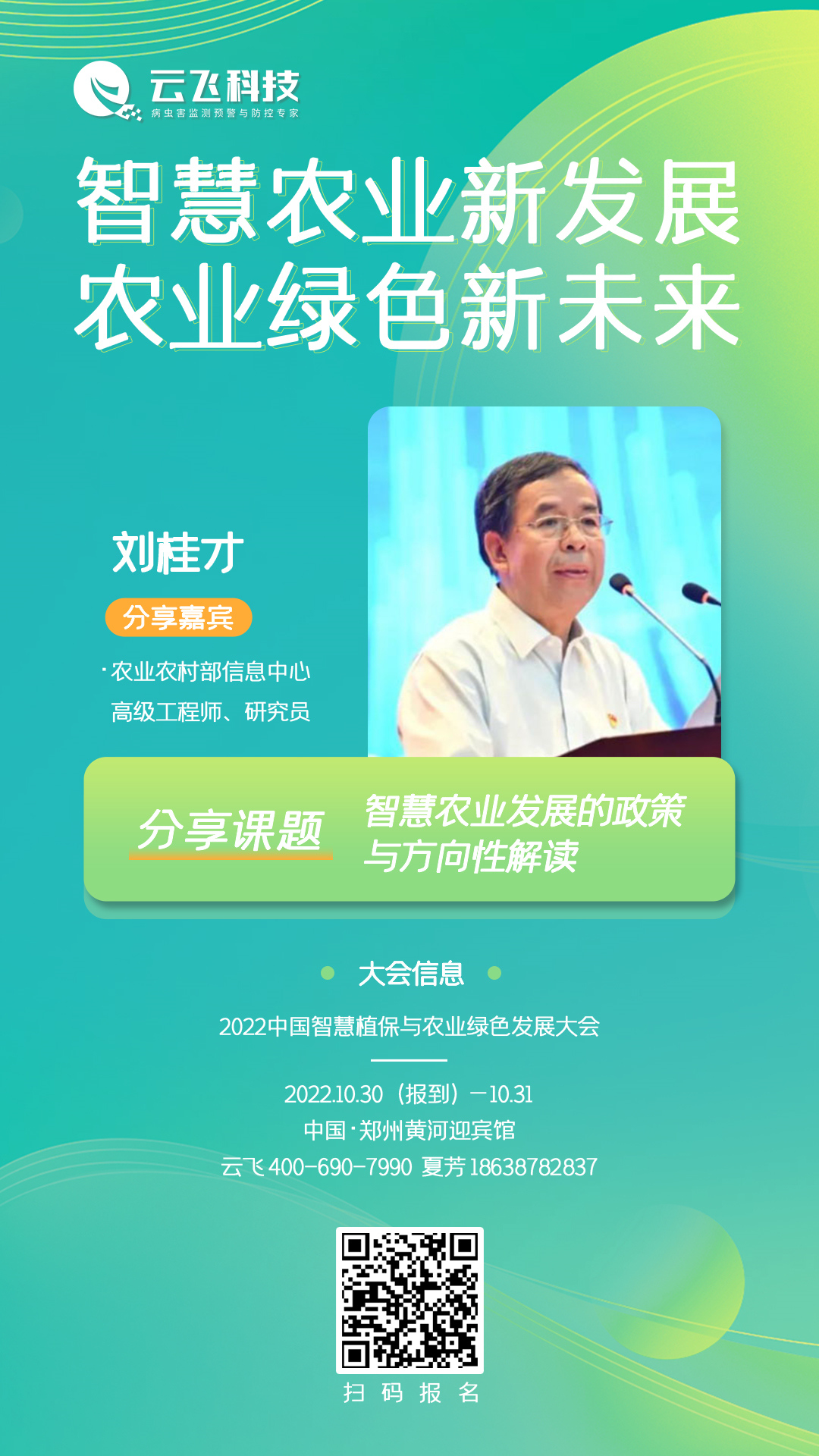 本次大会,刘桂才将莅临现场并分享《智慧农业发展的政策与方向性解读》课题,云飞科技与您相约郑州,共话智慧农业新发展,遇见农业绿色新未来。