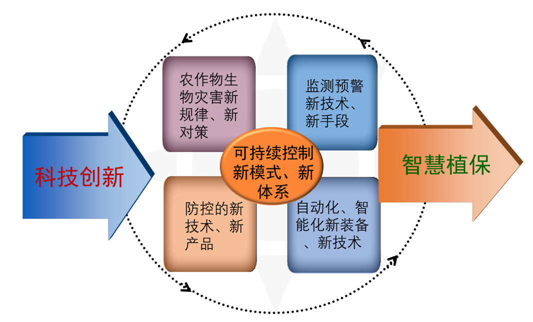 2.加速推进农作物病虫害绿色防控科技创新。比如研发有害生物监测预警新技术、新手段以及防控的新技术、新产品,研发满足自动化、智能化要求的植保新装备、新技术等。