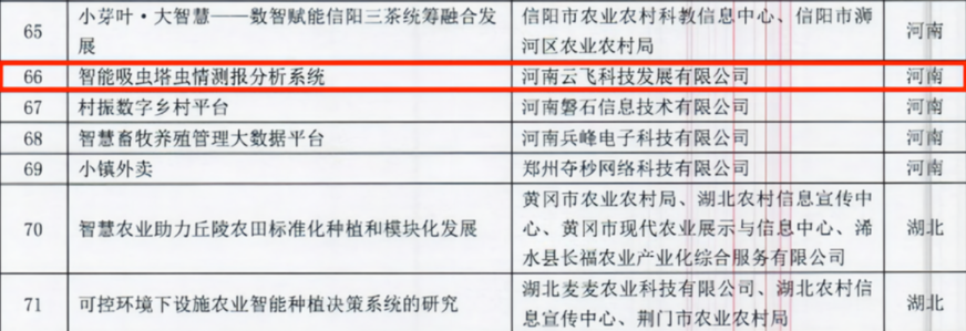 10月24日,农业农村部信息中心发布《2023数字农业农村新技术新产品新模式优秀项目推介公示》,其中,“智能吸虫塔虫情测报分析系统”入选2023数字农业农村新技术新产品新模式优秀项目,成为国家认可的典型示范。