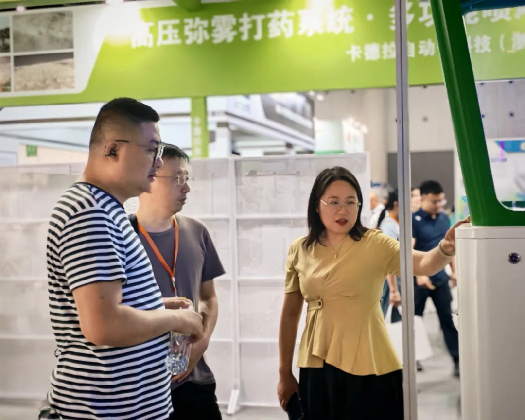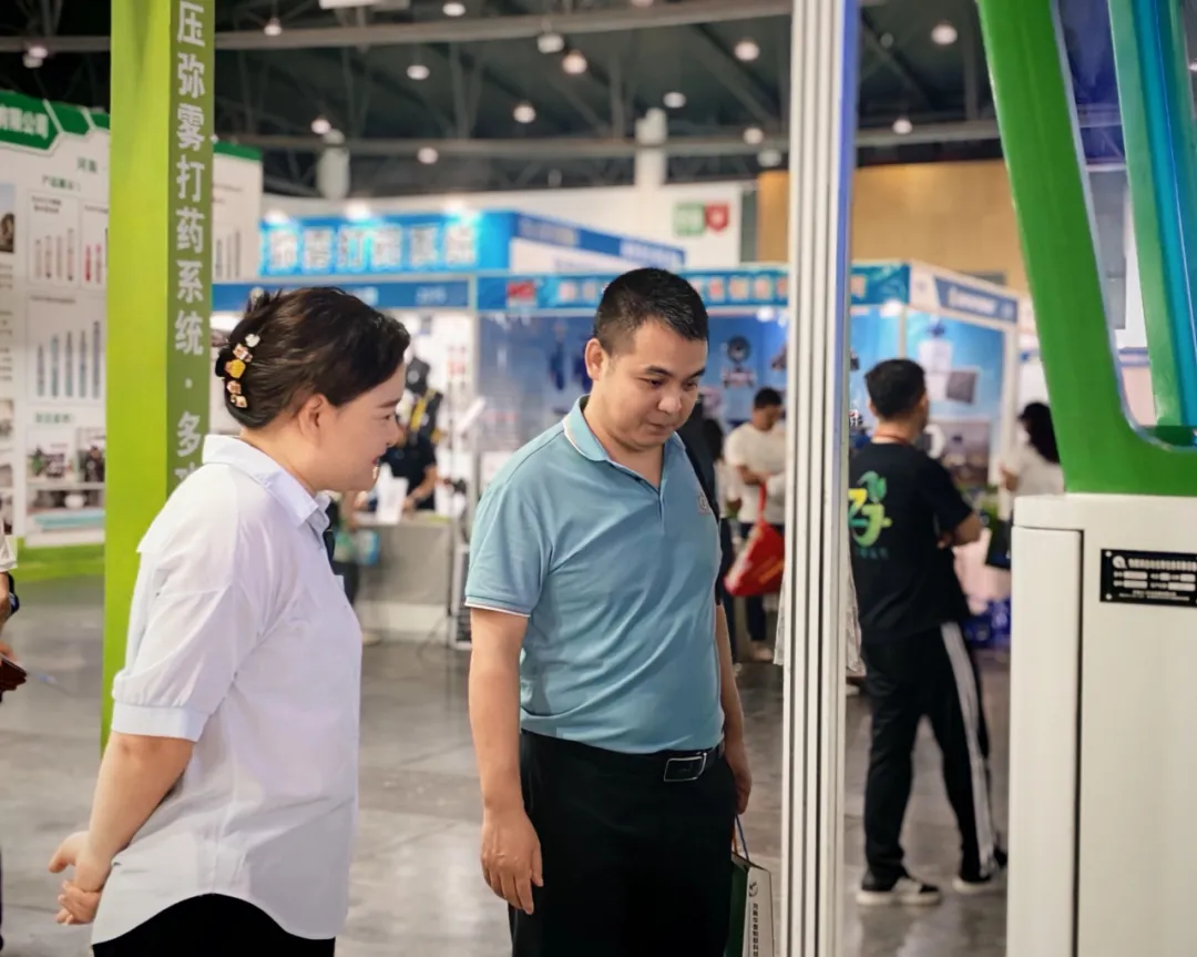 另一款展品风吸式太阳能杀虫灯则凭借“绿色、安全、智能”的特性获得专业观众一致好评。该设备结合风吸结构与太阳能供电模式,不仅杀虫效率高,而且无农药残留、环保友好,广泛适配于果蔬基地、大田等绿色种植区域。