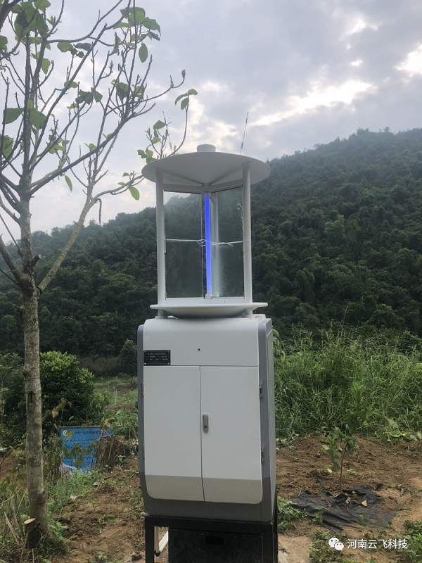 就在我欣赏美景时,满山的绿色中却伫立着几台忽闪着蓝光的智能植保仪器——云飞物联网虫情测报系统。为推进全域茶园绿色防控,科学防治茶树虫害问题,饶平县植保人员特采用云飞智能虫情测报系统以改善茶树生态环境,维护茶叶生产基地内的生物多样性,提高茶叶质量安全水平,保障茶产业健康发展。