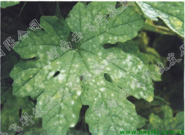 【症状特点】主要危害叶片。叶片起初零散出现近圆形白色霉斑,大小从芝麻粒至绿豆粒不等,边缘不明晰,然后霉斑发展为白色粉斑,再相互融合,叶面覆满白粉,致叶片变黄,终致干枯。
