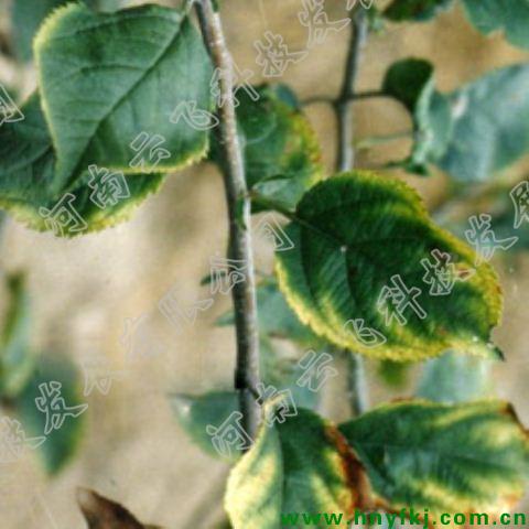 缺钾较重时,叶缘失绿部分变褐枯焦,严重时整叶枯焦,挂在枝上,不易脱落。