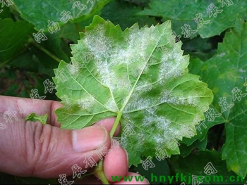 症状:该病主要危害叶片、枝梢及果实等部位,以幼嫩组织最敏感。葡萄展叶期叶片正面产生大小不等的不规则形黄色或褪绿色小斑块,病斑正反面均可见有一层白色粉状物,粉斑下叶表面呈褐色花斑,严重时全叶枯焦;新梢和果梗及穗轴初期表面产生不规则灰白色粉斑,后期粉斑下面形成雪花状或不规则的褐斑,可使穗轴、果梗变脆,枝梢生长受阻;幼果先出现褐绿斑块,果面出现星芒状花纹,其上覆盖一层白粉状物,病果停止生长,有时变成畸形,果肉味酸,开始着色后果实在多雨时感病,病处裂开,后腐烂。