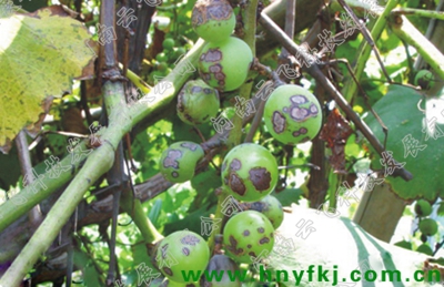 症状:当果粒长大开始变软时,果面出现直径0.5~1毫米的小黑点,散生像蝇粪状。不危害果肉,病果粒不腐烂。但绿色果面有明显黑点。病害孢子散落在果面上,萌芽后菌丝分泌分解酶将果粉分解,菌丝体即覆盖果面,当果粉消失后,有损果粒外观。新梢发病也会出现小黑点。