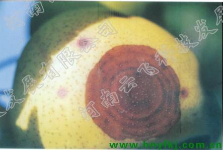 二、生长期喷药保护 使用药剂种类、时期、次数,与果实套袋或不套袋有密切关系。①对不套袋的果实。苹果谢花后立即喷药,每隔15~20d喷药1次,连续喷5~8次。在多雨年份以及晚熟品种上可适当增加喷药次数。可选择下列药剂交替使用:石灰倍量式波尔多液200倍液、80%喷克可湿性粉剂800倍液、40%多锰锌可湿性粉剂600~800倍液、80%大生M-45可湿性粉剂600~800倍液、38%恶霜嘧铜菌酯500~600倍稀释液。还可选用80%山德生、80%普诺、60%拓福、40%博舒、40%福星、38%粮果丰(多菌灵+福美双+三唑酮)、80%超邦生、70%甲基硫菌灵、70%代森锰锌+50%多菌灵、50%多霉威(多霉清)等。在一般果园,可以建立以波尔多液为主体、交替使用有机杀菌剂的药剂防治体系。实践证明,波尔多液与有机合成杀菌剂交替施用,防治效果较好,病菌不易产生抗药性。但在幼果期(落花后30d内)不宜使用,否则可引发果锈。在果实生长后期(8月底至9月底)禁止喷施波尔多液,提倡喷洒保护性杀菌剂与甲基硫菌灵等内吸性杀菌剂交替轮换使用或混合使用。也可试行侵染后防治,即在果实转入感病状态之前(7月20日前后)施用内吸治疗杀菌剂苯菌灵,每隔15d喷1次,共喷2~3次,据报道防效很好。雨季喷药最好加入害立平、助杀、平平加等助剂,以提高药剂的黏着性。②对套袋果实。防治果实轮纹病关键在于套袋之前用药。谢花后即喷80%喷克或80%大生M-45等,套袋前果园应喷一遍甲基硫菌灵等杀菌剂,待药液干燥后即可套袋。禁止喷施波尔多液,最好不要使用代森锰锌、退菌特等产品,以免污染果面,影响果品外观质量。套袋后应该加强对叶片、枝干病害的防治,如果园中只有部分果实套袋,则不能减少保果药剂。可选用70%甲基硫菌灵,或35%轮纹病铲除剂,或58%多·霉威等内吸性杀菌剂附加元素健康肥-钙加硒。果实脱袋后,如果整个果园保护得好,可不再喷药;如果保护得不好,有大量病原菌存在,则应喷1~2次。有效药剂有喷克、甲基硫菌灵、大生M-45等。