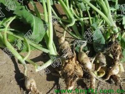 症状 主要为害油菜根部,主根或侧根膨大成纺锤状或指形至不规则形的肿瘤,后肿瘤表皮变暗粗糙,地上部生长不良,造成叶片变黄萎蔫。