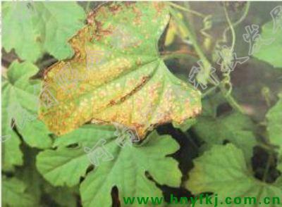 主要危害叶片、茎蔓和果实。发病叶片初呈黄褐色水浸状小病斑,多角形,中央黄白色至灰白色,易穿孔或破裂。茎病部呈水浸状浅黄褐色条斑,后期易纵裂,清晨或湿度大时分泌出白色至乳白色菌液。
