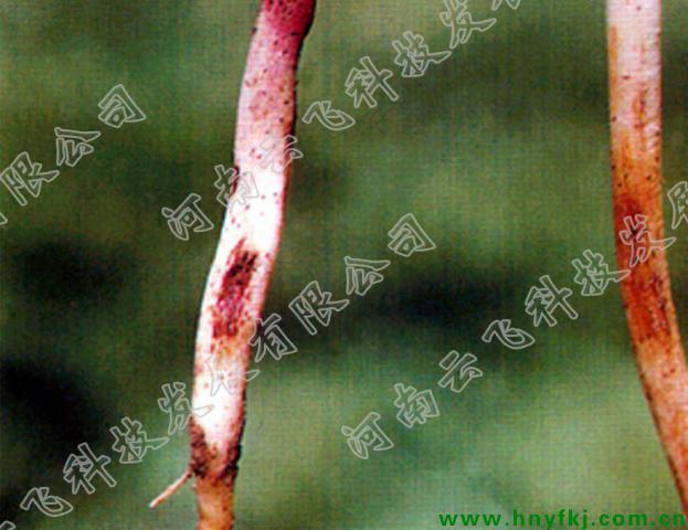 症状 我国各棉区均有发生,长江流域、黄河流域棉区受害重,辽河流域也有发生。苗期、铃期均可染病。苗期染病 幼芽于出土前受害,芽变为红褐色腐烂。出土后受害棉苗根部的根磁、侧根变黄,后变黑褐色腐烂。幼茎染病导管变为暗褐色,近地面的幼茎基部出现黄色条斑,后变褐腐烂,幼根、幼茎肿胀,子叶、真叶边缘产生灰红色不规则斑,湿度大时其上面产生粉红色霉层,即病原菌的分生孢子。生产上早播的棉田或遇低温多雨天气,根部腐烂严重的,造成死苗。成株茎基部染病 产生环状或局部褐色伤痕,皮层腐蚀,木质部呈黄褐色。棉铃染病 参见棉铃红腐病。