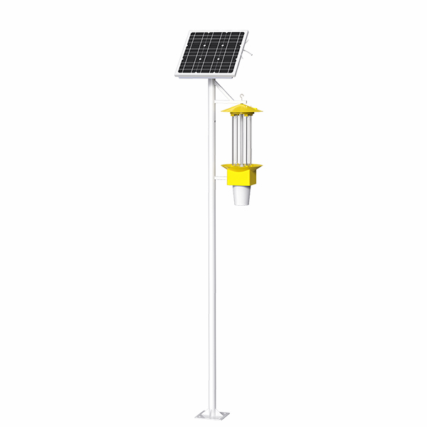 太阳能杀虫灯是利用太阳能电池板作为用电来源,其将白天太阳能发的电贮存起来,晚上放电给杀虫灯具,引诱害虫扑向灯的光源,光源外配置高压击杀网,杀死害虫,使害虫落入专用的接虫袋内,达到灭杀害虫的目的。